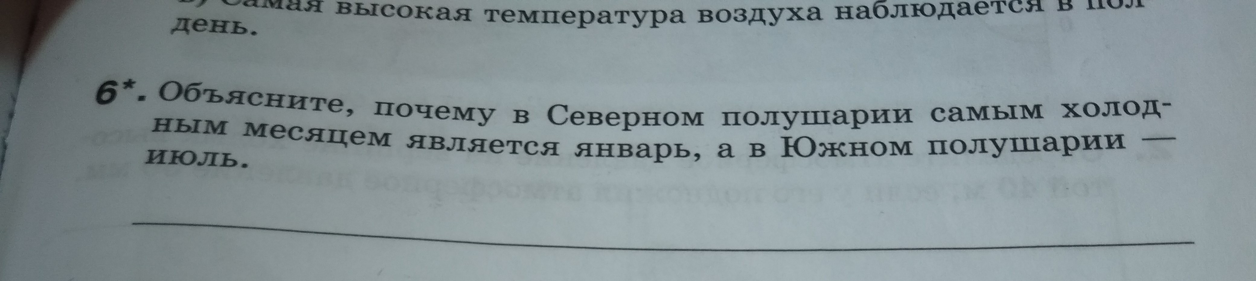Почему в северном полушарии самым холодным месяцем является январь, а в Южном полушарии июль