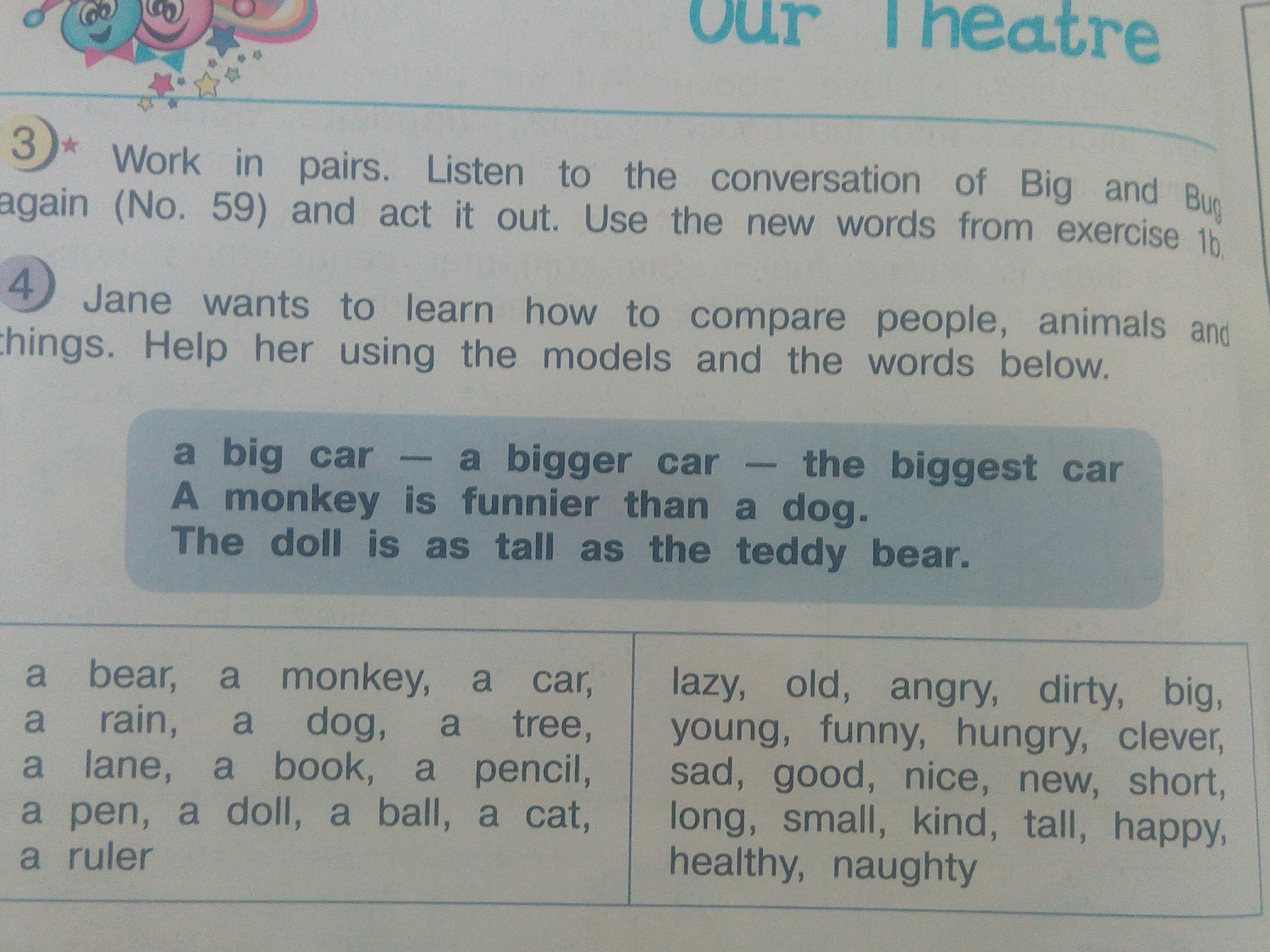 Джейн хочет научиться сравнивать людей, животных и вещи. Помогите ей использовать приведенные ниже модели и слова. 4
