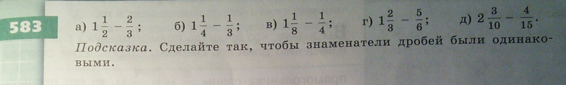 выполните вычисление: а) 1 (целая) 1/2-2/3 б) 1 (целая) 1/4-1/3 в) 1 (целая) 1/8-1/4 г) 1 (целая) 2/3-5/6 д) 2 (целых) 3/10-4/15