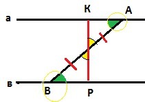 Докажем, что если ∠ОВР=∠КАО, то а║в.