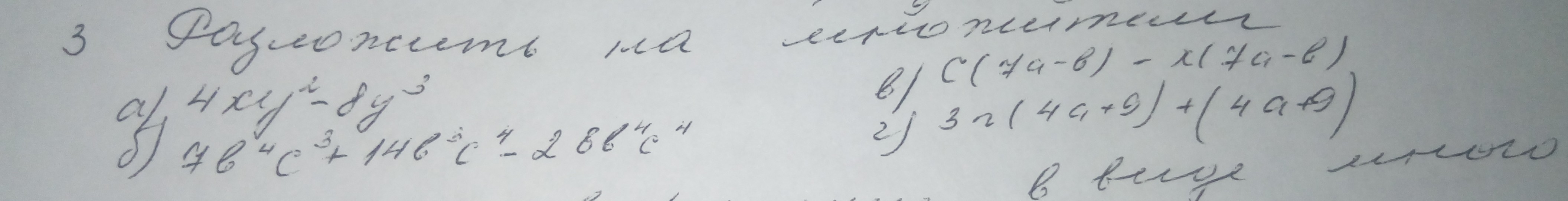 б)7b^4c^3+14b^3c^4-28b^4c^4 в)c(7a-b)-x(7a-b)