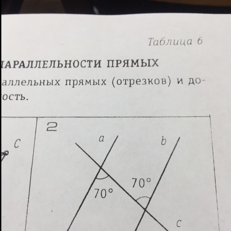 пусть С-секущая a и b следственно т.к. угол 1(отметишь на рисунке, это который ниже) равен углу 2(отметишь на рисунке, это который выше) равен 70°, то угол 1 и 2-накрест лежащие. т.к. угол 1=углу 2 и они накрест лежащие, то прямые a и b параллельны.