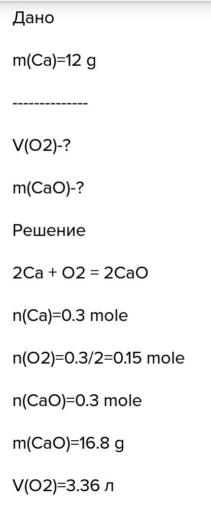 определите массу оксида кальция, который образуется при взаимодействии 4 грамм кальция с кислородом 2Ca+O² = 2CaO