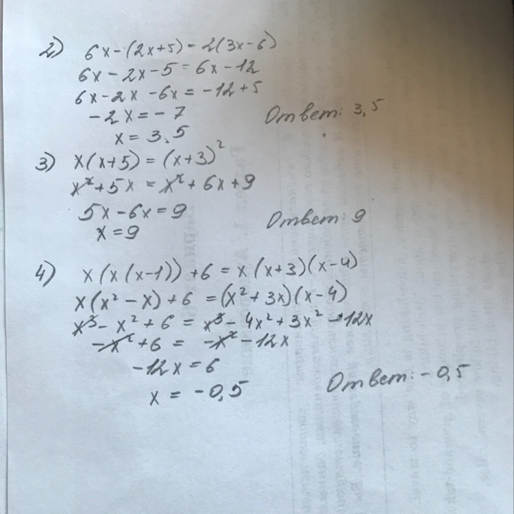 4) х(х(х-1))+6=х(х+3)(х-4)