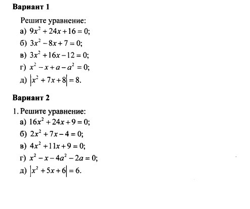 Квадратные уравнения, вариант первый!