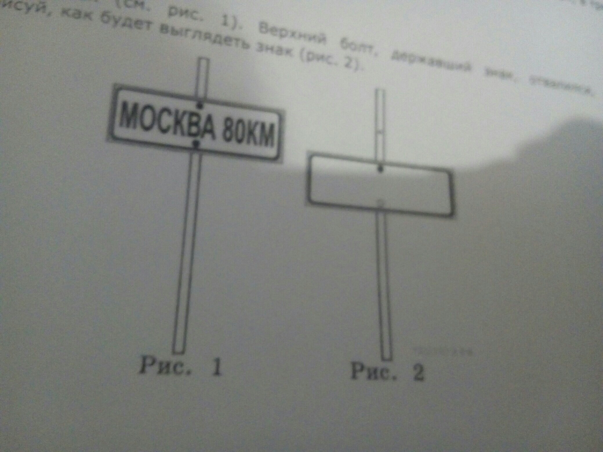 На столбе висел знак. Верхний болт , державший знак , отвалился, и знак перевернулся . Нарисуй, как будет выглядеть знак. ( Дам 18 баллов)