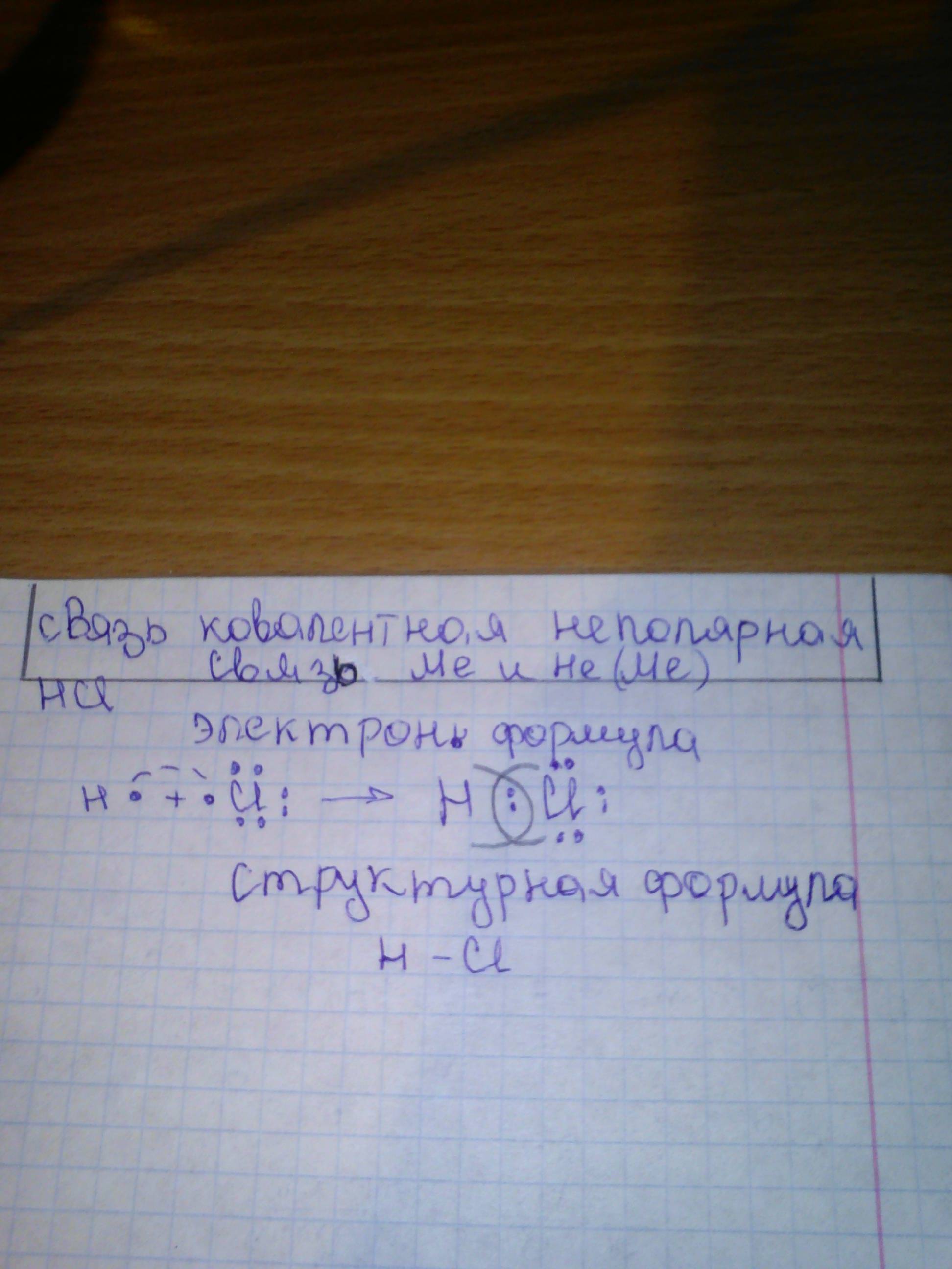 Составь электроную формулу молекул HCL на основе электронных схем атомов.Назови тип химической связи.