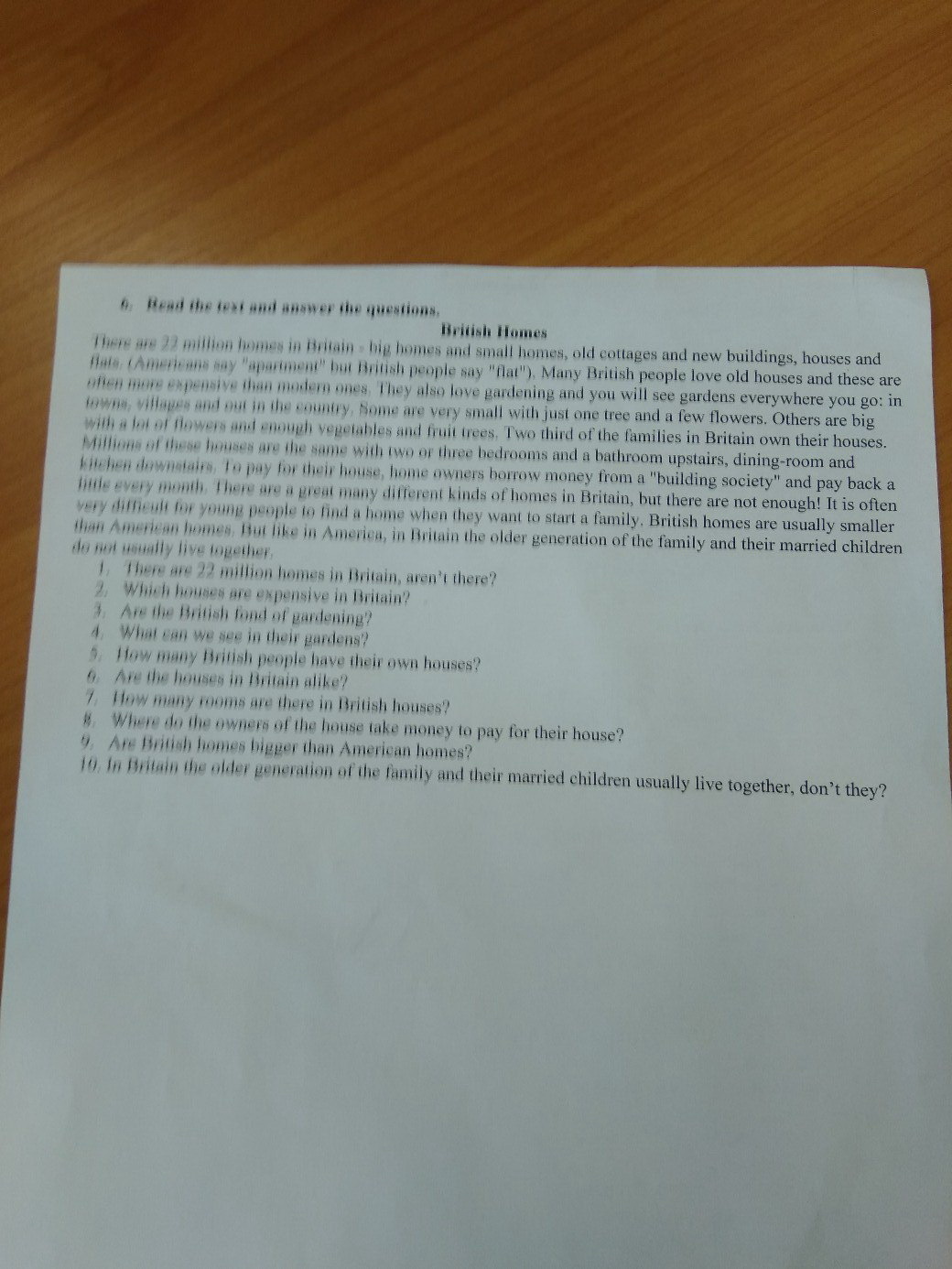 5) Two third of the families in Britain own their houses