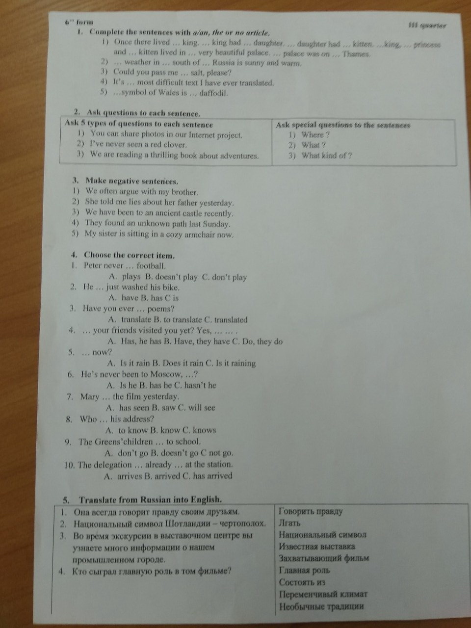 Там в 1 задании в 1 предложении перед princess должен стоять артикль the