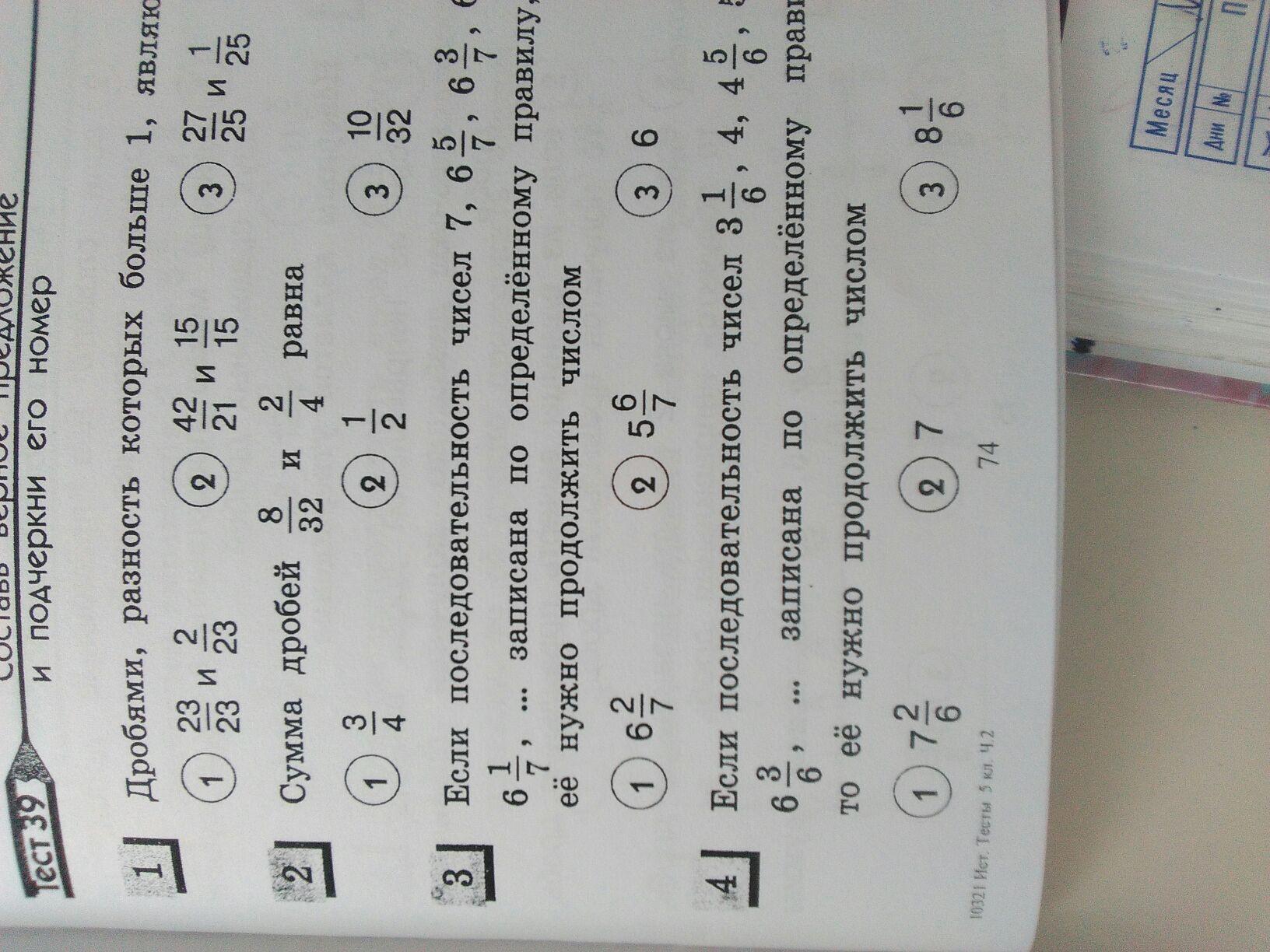 во втором (2) , в третьем - 5 2/7