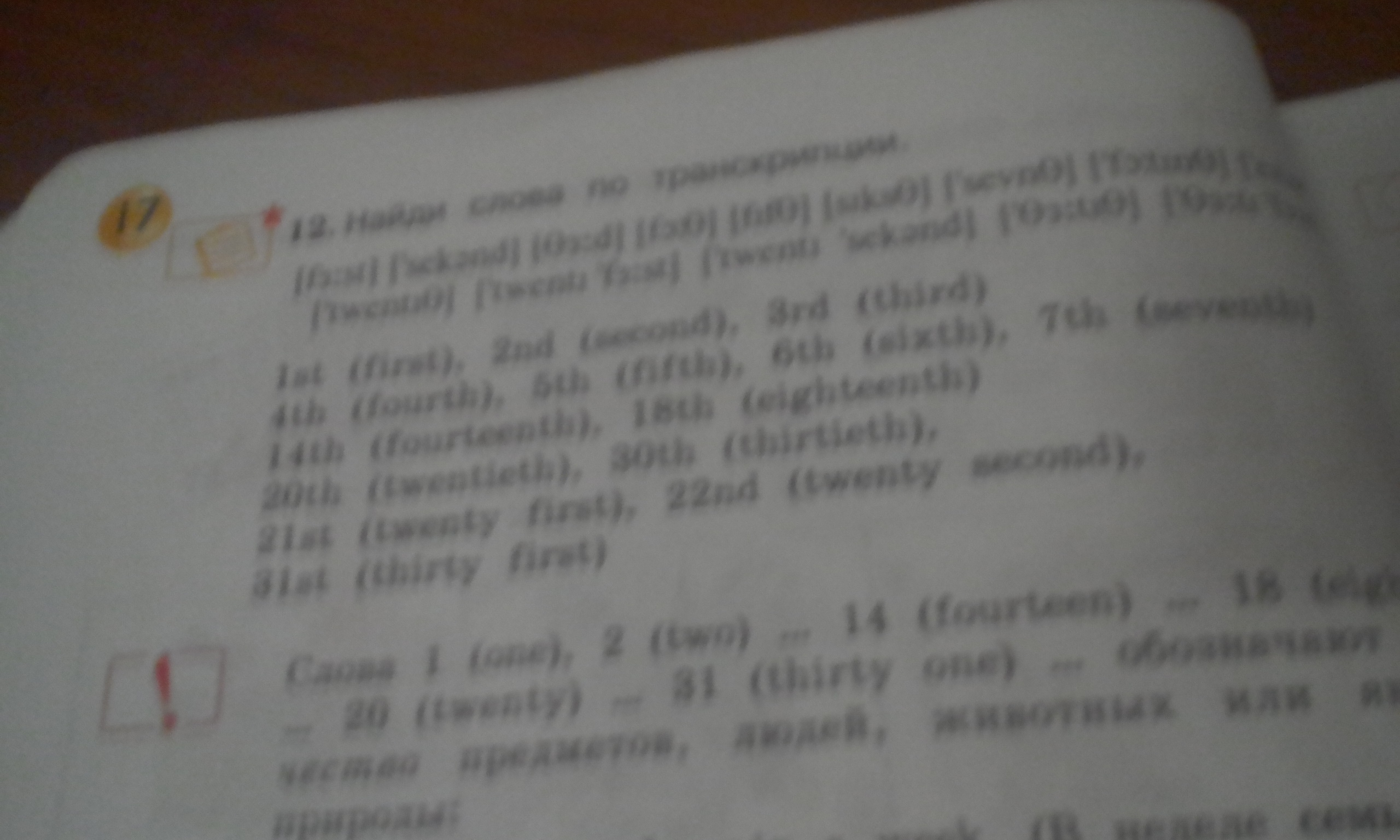 [f3:st] ['secənd] [03:d] [fc:0] [fif0] [siks0] ['sevn0] ['fc:tin] ['eitin0] ['twenti0] ['twenti 'f3:st] ['twenti 'sekənd] ['03:ti0] ['03:ti 'f3:st]
