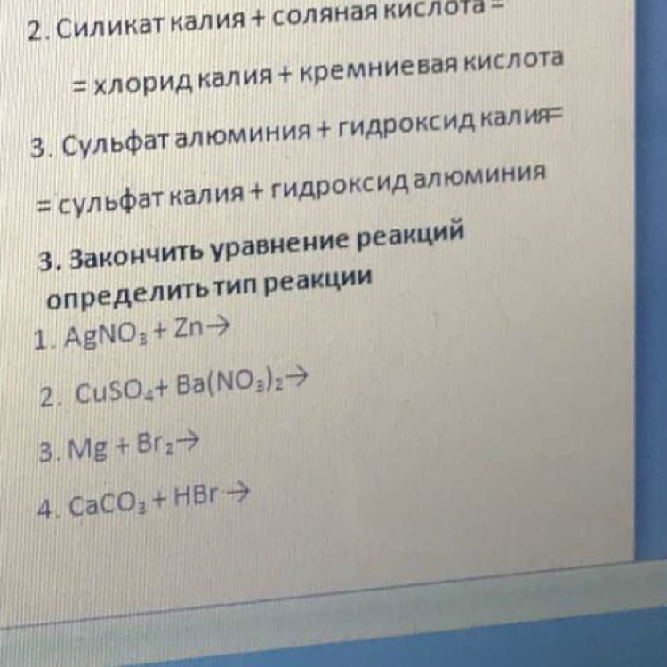 1. 2AgNO3+Zn-->Zn(NO3)2+2Ag (р.замещения)