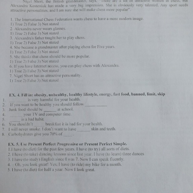 EX5. 1. I have been dieting for the past few years. I have tried all sorts of diets