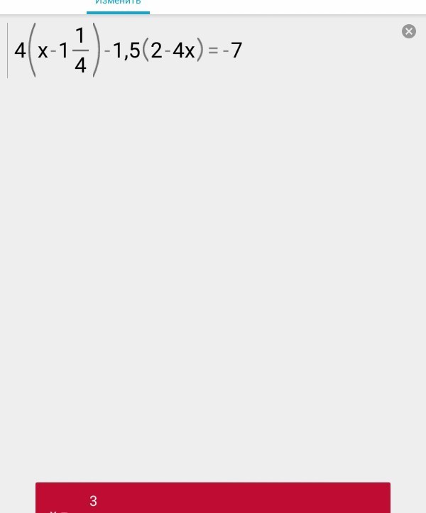 4•(x-1 1/4)-1,5(2-4x)=-7