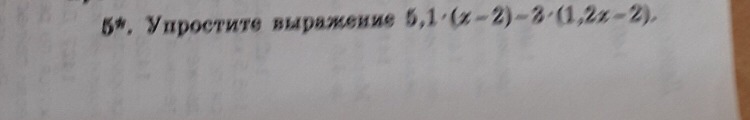 5.1 × (x-2) - 3 (1.2x - 2) = 5.1x - 10.2 - 3.6x + 6 = 1.5x - 4.2