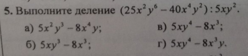 ответ в) ( в скобках каждый одночлен делишь на 5хy^2)