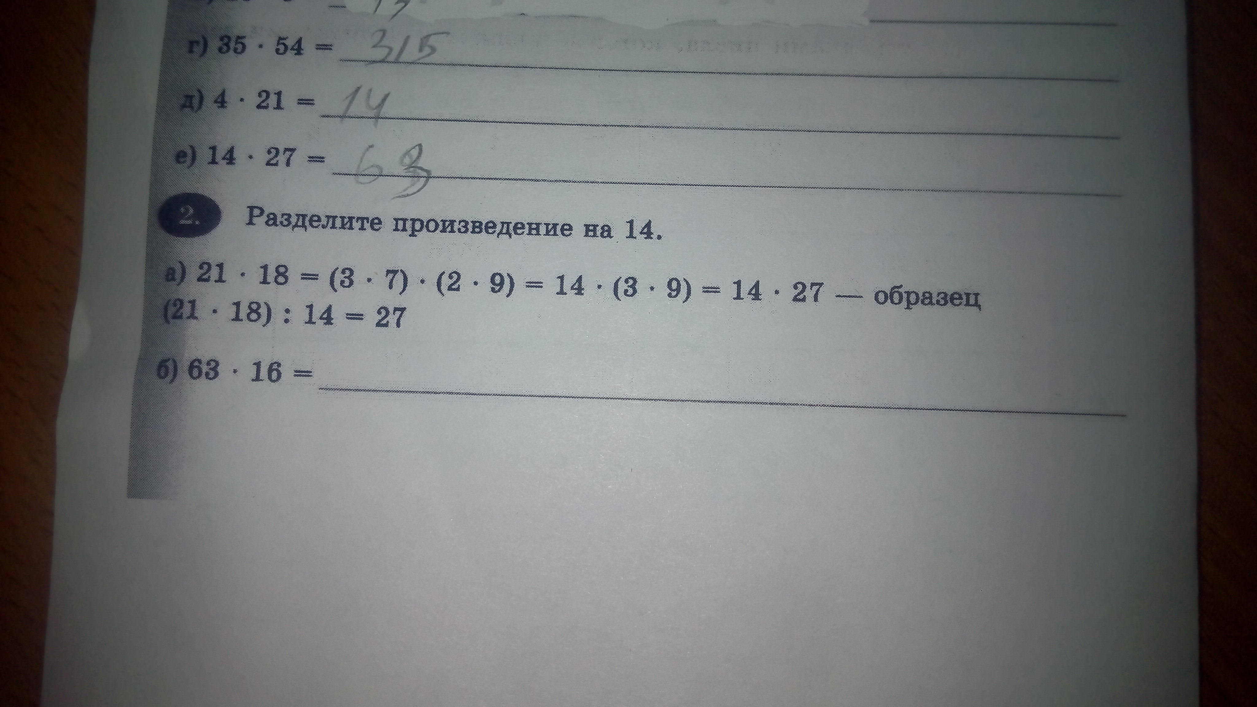 63 · 16 = (9 · 7) · (2 · 8 ) = (7 · 2) · (9 · 8) = 14 · 72