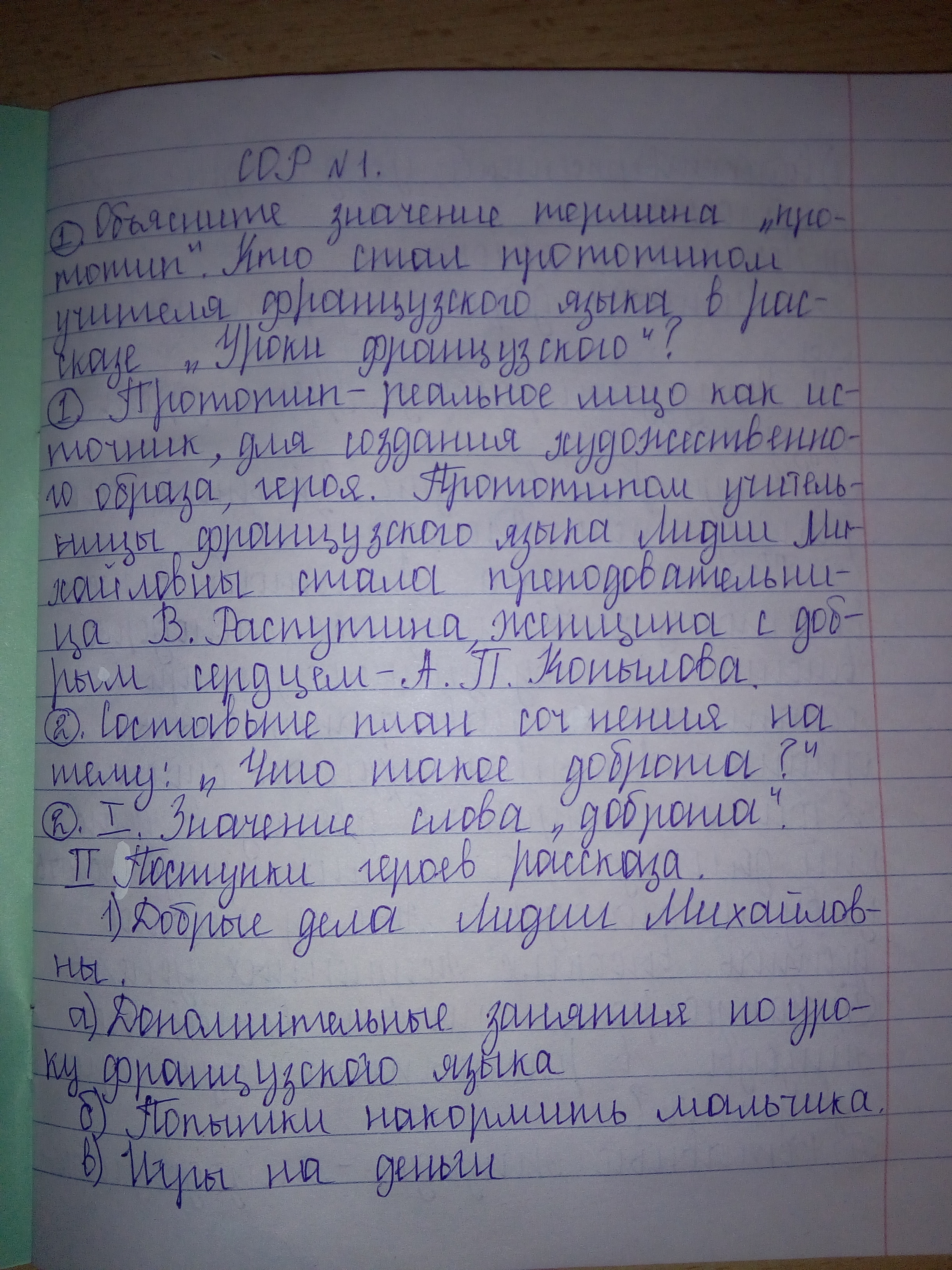 Составьте план сочинения на тему "Уроки доброты по рассказу Распутина Уроки французского" где-то на 3-5 абзаца!