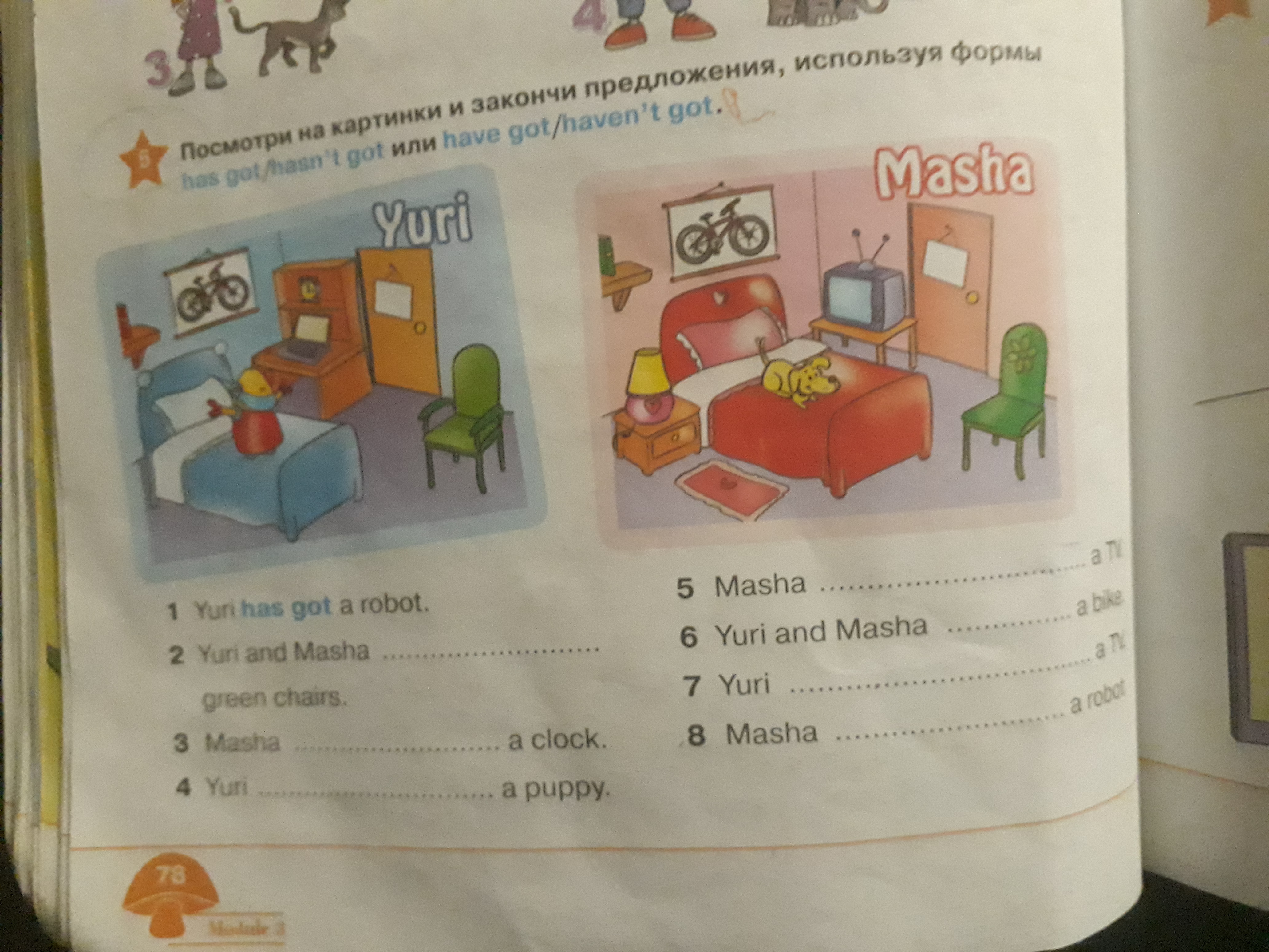 Помогите пожалуйста решить задачу будь задачи со мной персоной Посмотри на картинки и закончи предложения используя формы ос got hasn't got или have got haven't got