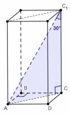 AC лежит в плоскости основания, ребро СС1 прямоугольного параллелепипеда перпендикулярно плоскости основания. Треугольник ACC1 - прямоугольный с углом 30°.
