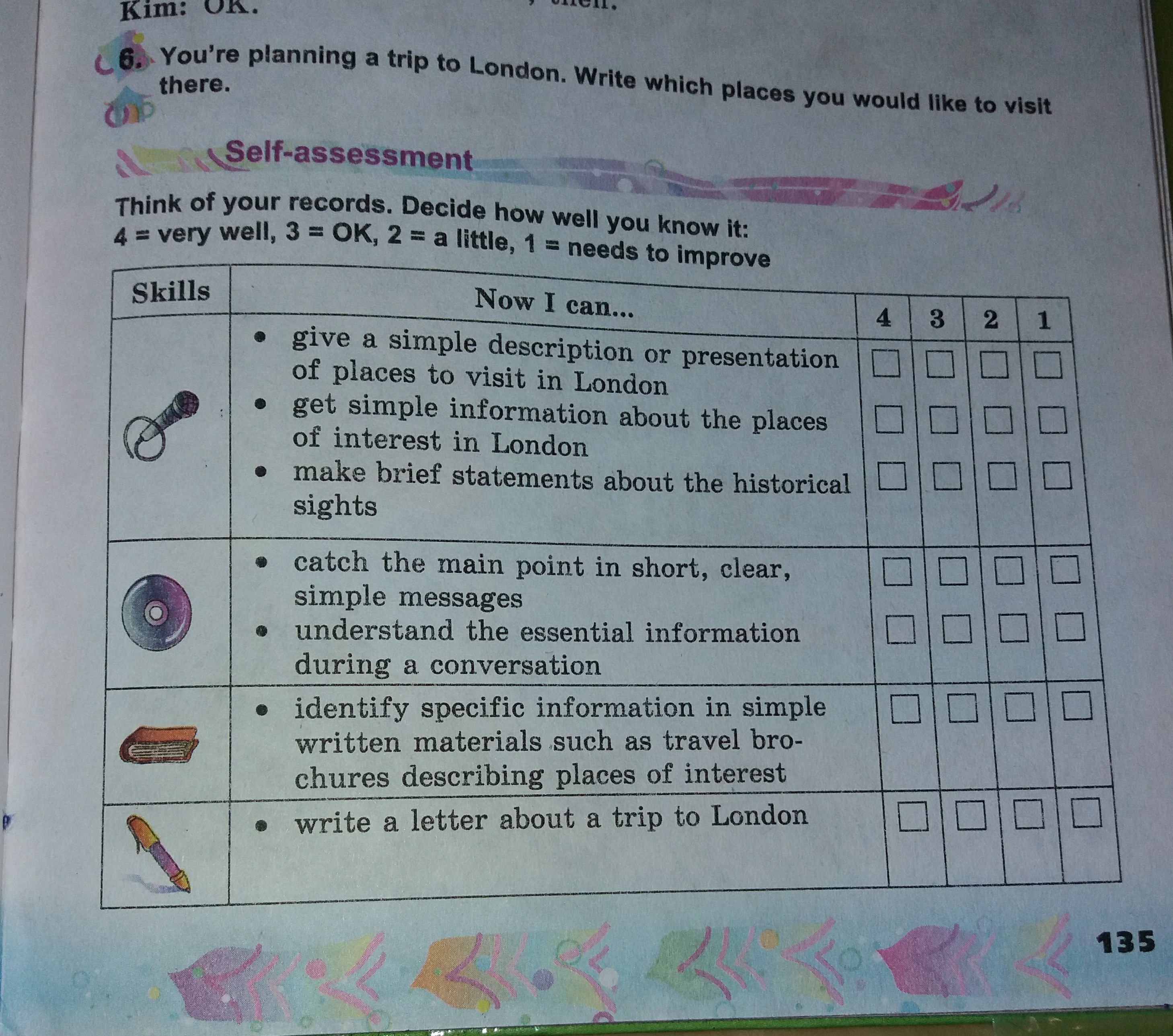 тебе нужно поставить баллы. на сколько хорошо у тебя получается/знаешь что-то или это надо улучшить.