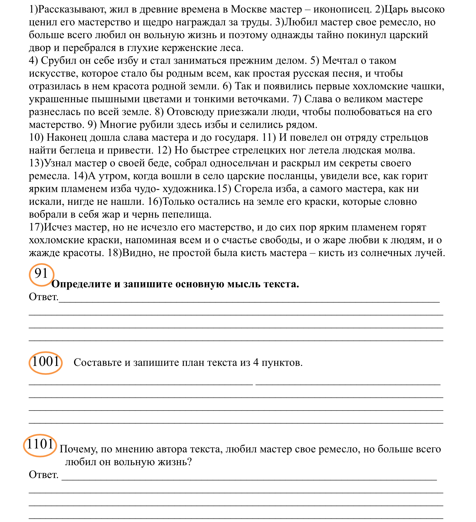 91.Главная мысль в том,что мастер хотел сделать людям лучше.Подарить им творчество.