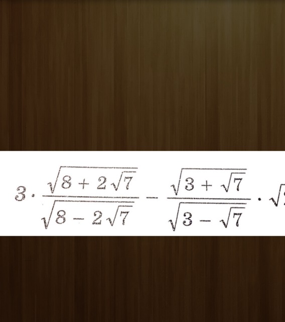 3*frac{sqrt{8+2sqrt7}}{sqrt{8-2sqrt7}}-frac{sqrt{3+sqrt7}}{sqrt{3-sqrt7}}*sqrt2=\