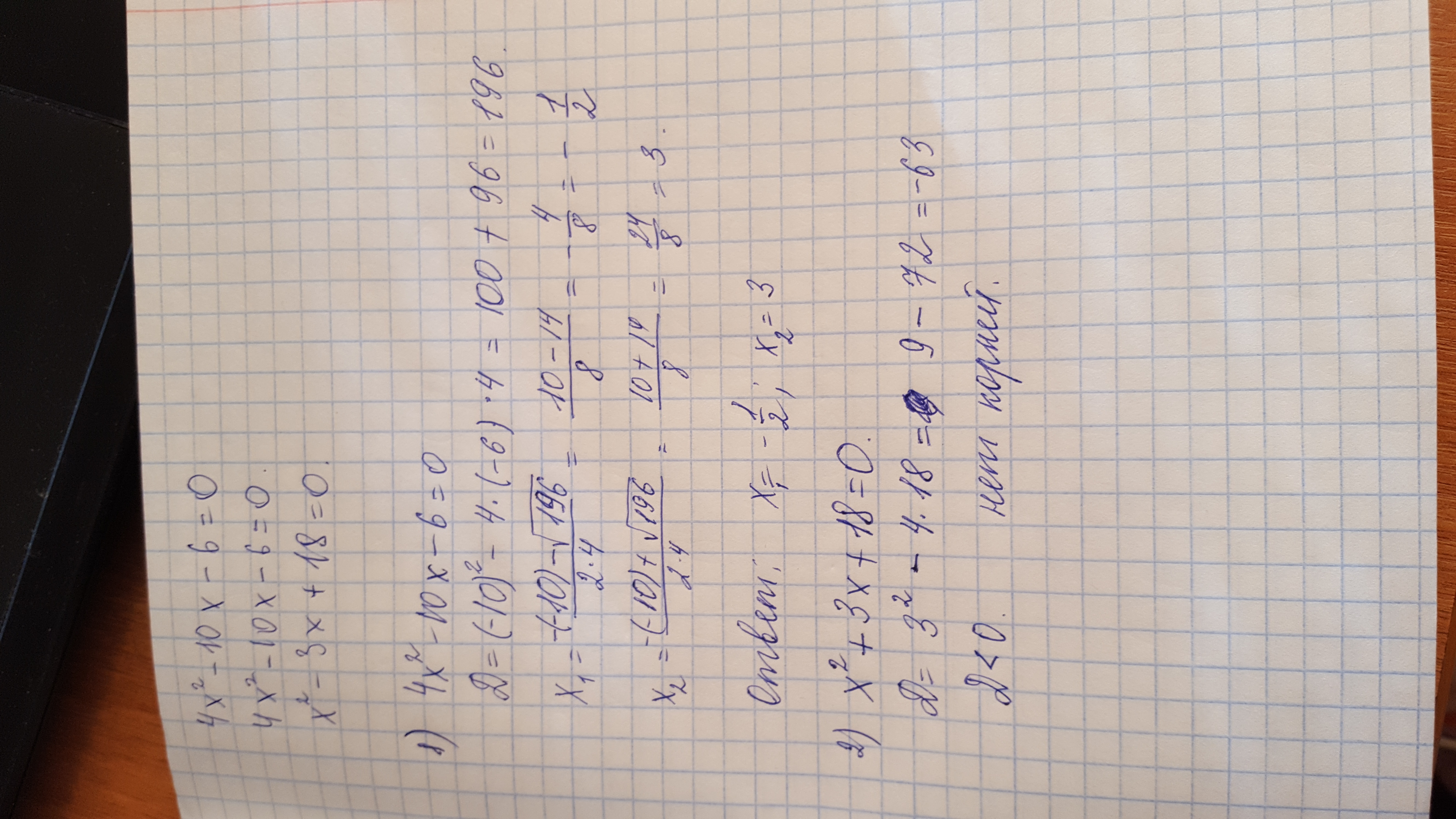 во втором уравнение дискриминант равен нулю что говорит о том, что он не имеет корней