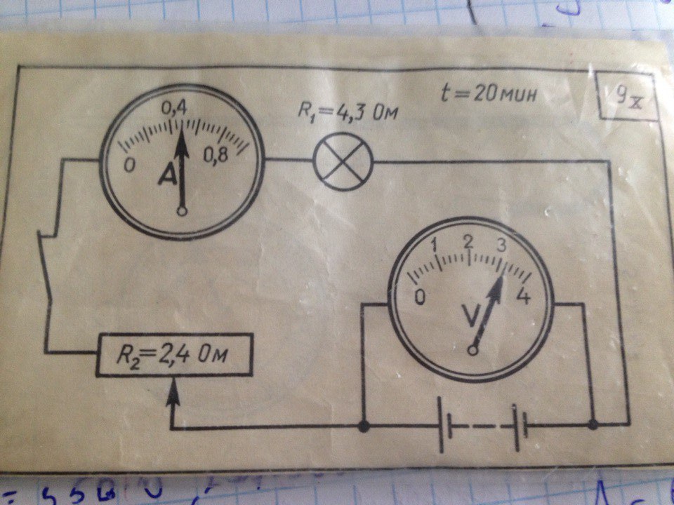 на реостате Ur2=I*R2=0.48*2.4=1.15V