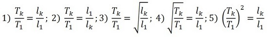 где k может принимать следующие значения: 2, 3, 4, 5; например, (T3/T1)^2=l3/l1
