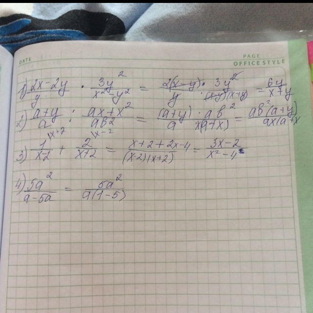 1)2x-2y/y умножить 3y в квадрате/x в квадрате-yв квадрате