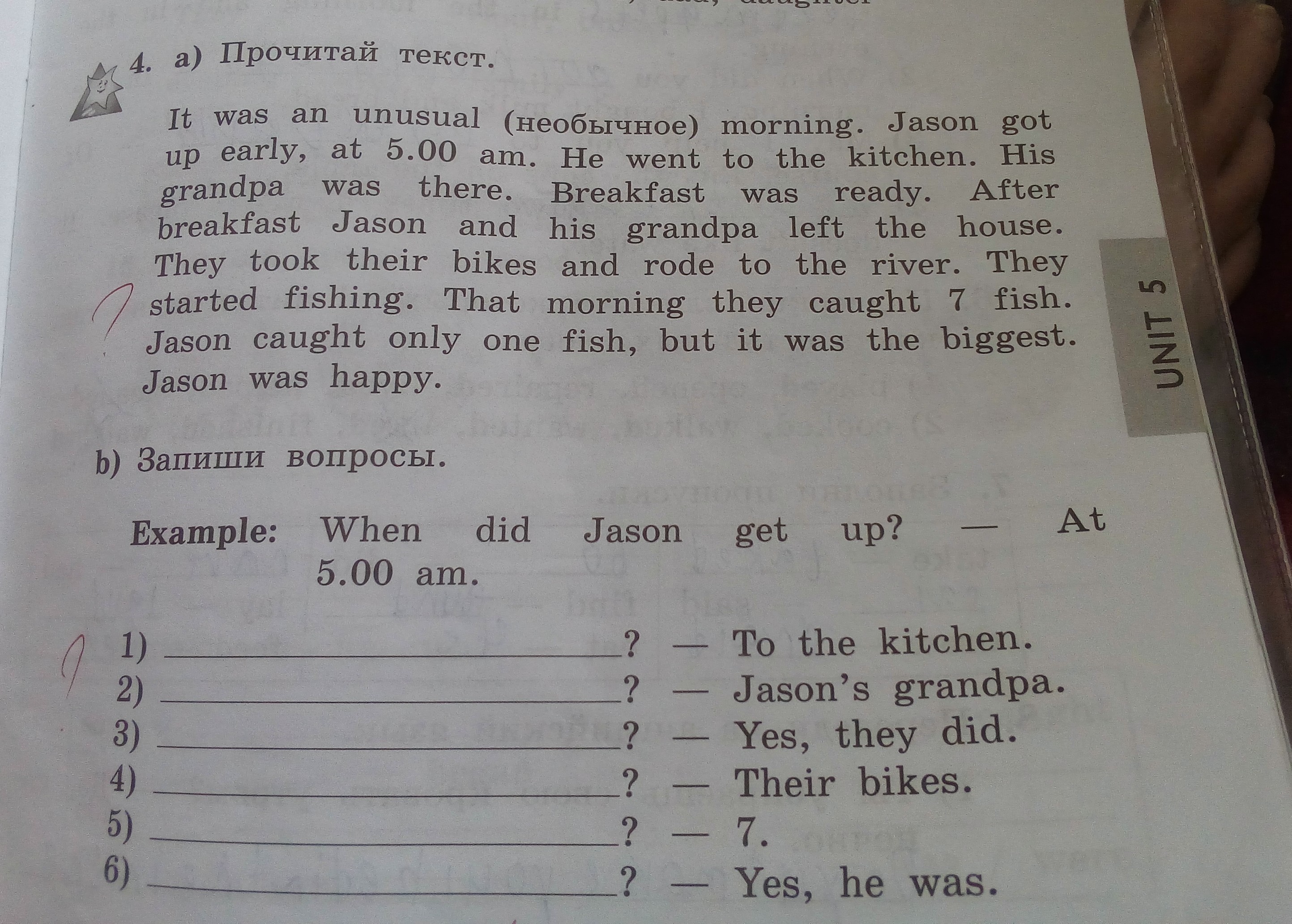 1)Where did we went? 2)Why did it went with Jason left the house? 3) Did they started fishing? 5)How much did they caught fish? 6) Was did Jason happy?