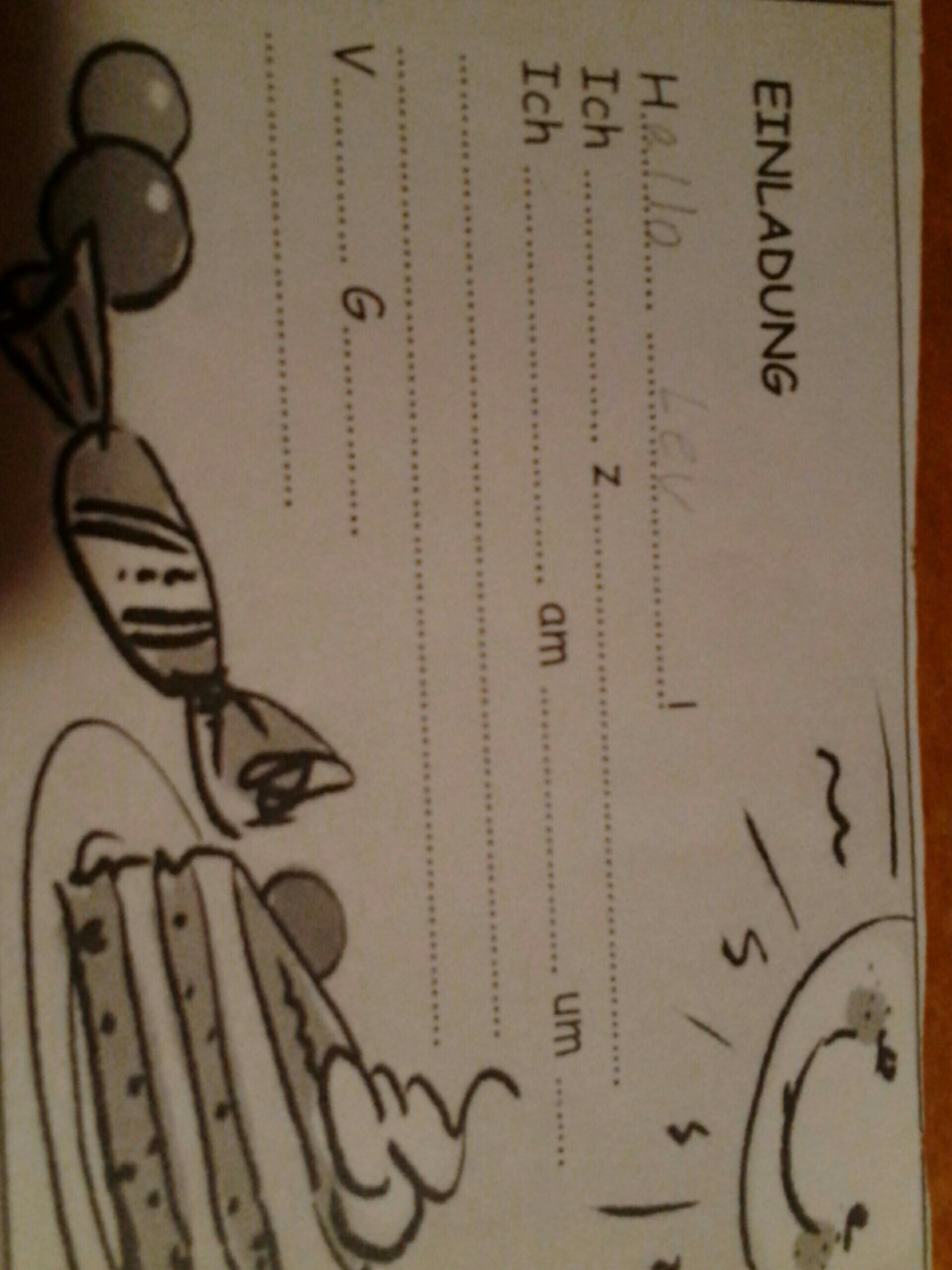 Hallo! Ich möchte dich zu meinem Geburtstag einladen. Er wird 26 um 16:00 Uhr in meinem Haus sein.