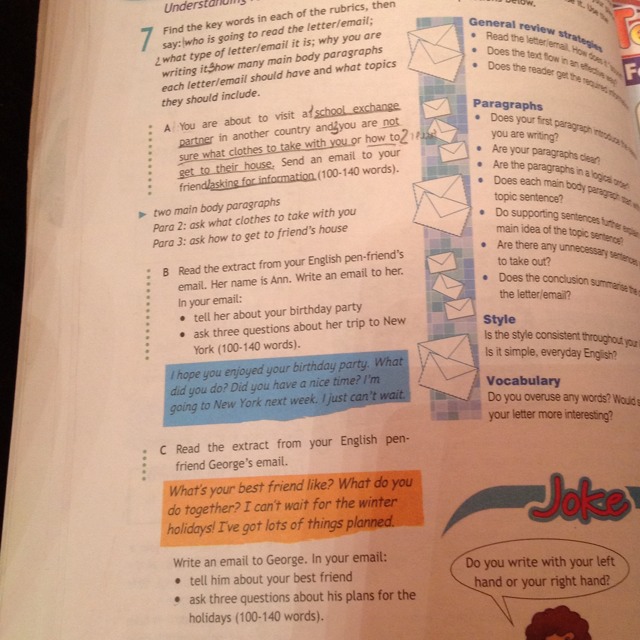 Помогите пожалуйста написать письмо. Темы для письма номер 7 (тема любая кроме А, разобрали в классе).