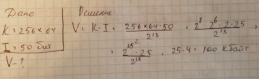 Найти информационный объем изображения в КБ, если размер изображения 256x64, глубина цвета 50 бит.