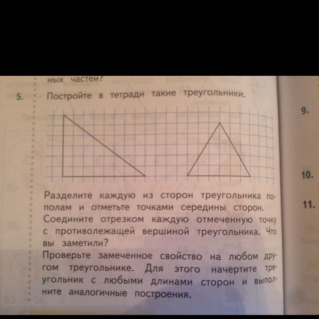 Просто пополам подели и всё готово и начерти любой треугольник и всё по полам дели если получется