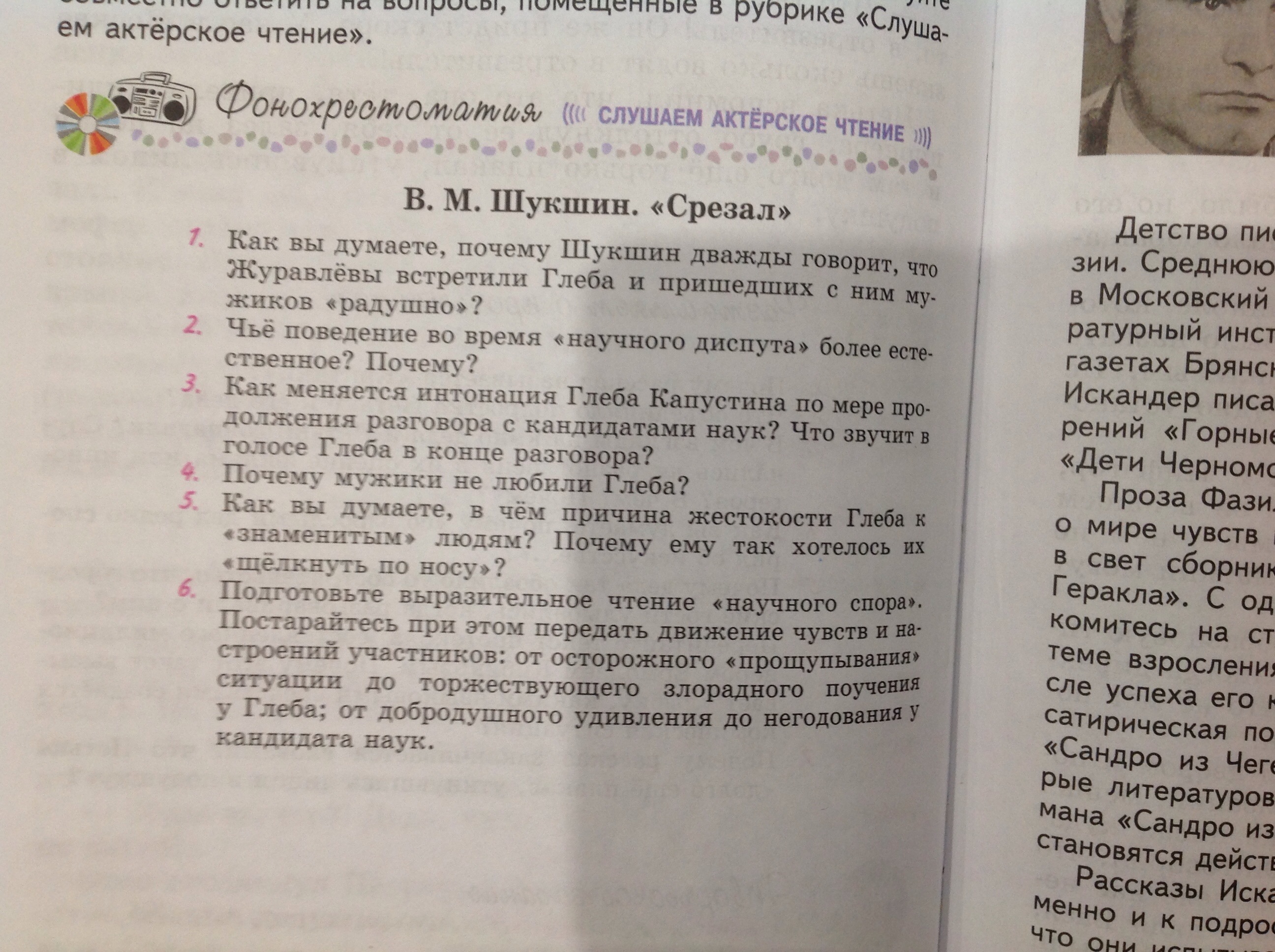 Ответьте пожалуйста на мои вопросы рассказ Срезал В.М. Шукшин