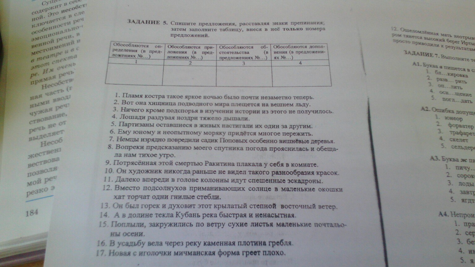 1. Предложения 1(...,такое яркое ночью,..),5(...,оставшиеся в живых,...),9(..,потрясенная этой смертью,..),12(..,приманивающих солнце,..),17( ..,с иголочки,..)