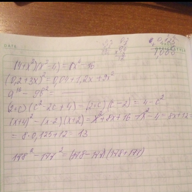5)(x+4)^2-(x-2)(x+2)=(0,125+4)²-(0,125-2)(0,125+2)=_( *_*)_/