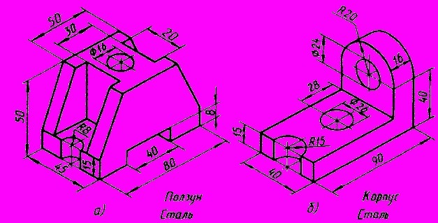 На листе формата А4 выполните вид слева и постройте целесообразный разрез одной из деталей нанесите размеры