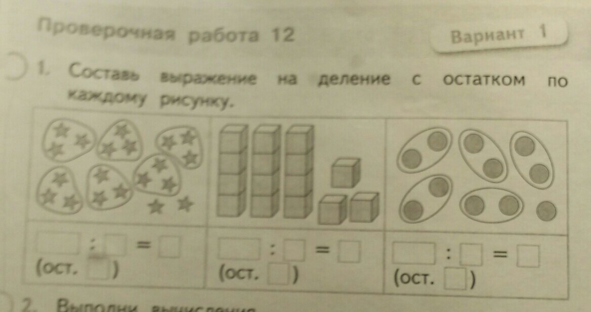 Составь выражение на деление с остатком по каждому рисунку.