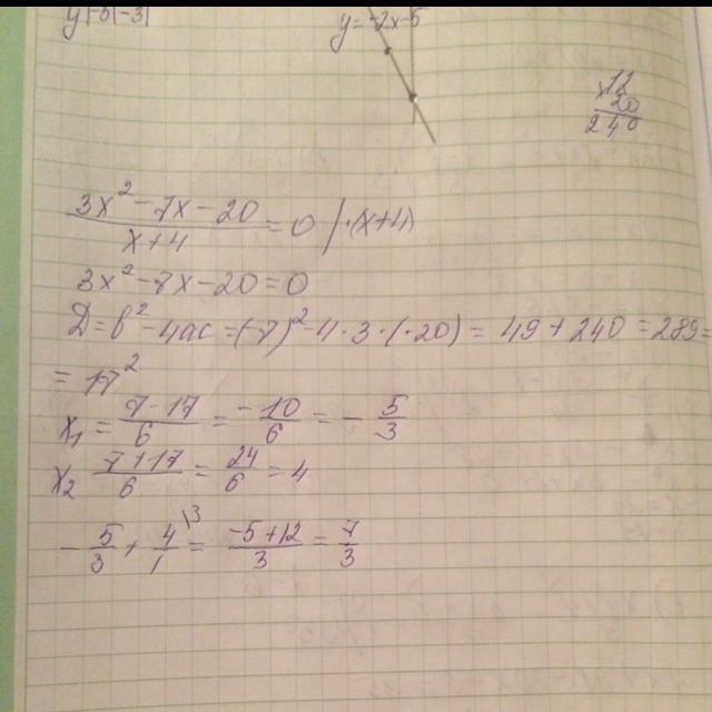 Найдите сумму Корней ( или корень если он единственный )уравнения 3x^2+7x-20/x+4=0