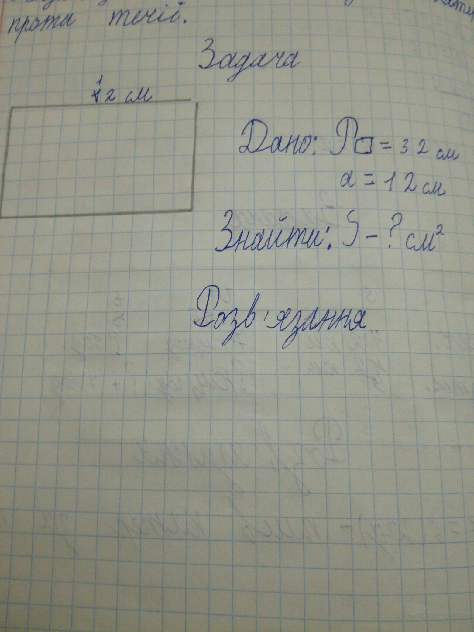 периметр прямокутника P=32см а=12см.Знайти S-?см