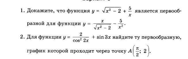 1.для доказательства нужно взять производную от функции y=√(x²-2)+5/x и сравнить с функцией y=x/√(x²-2)-5/x²