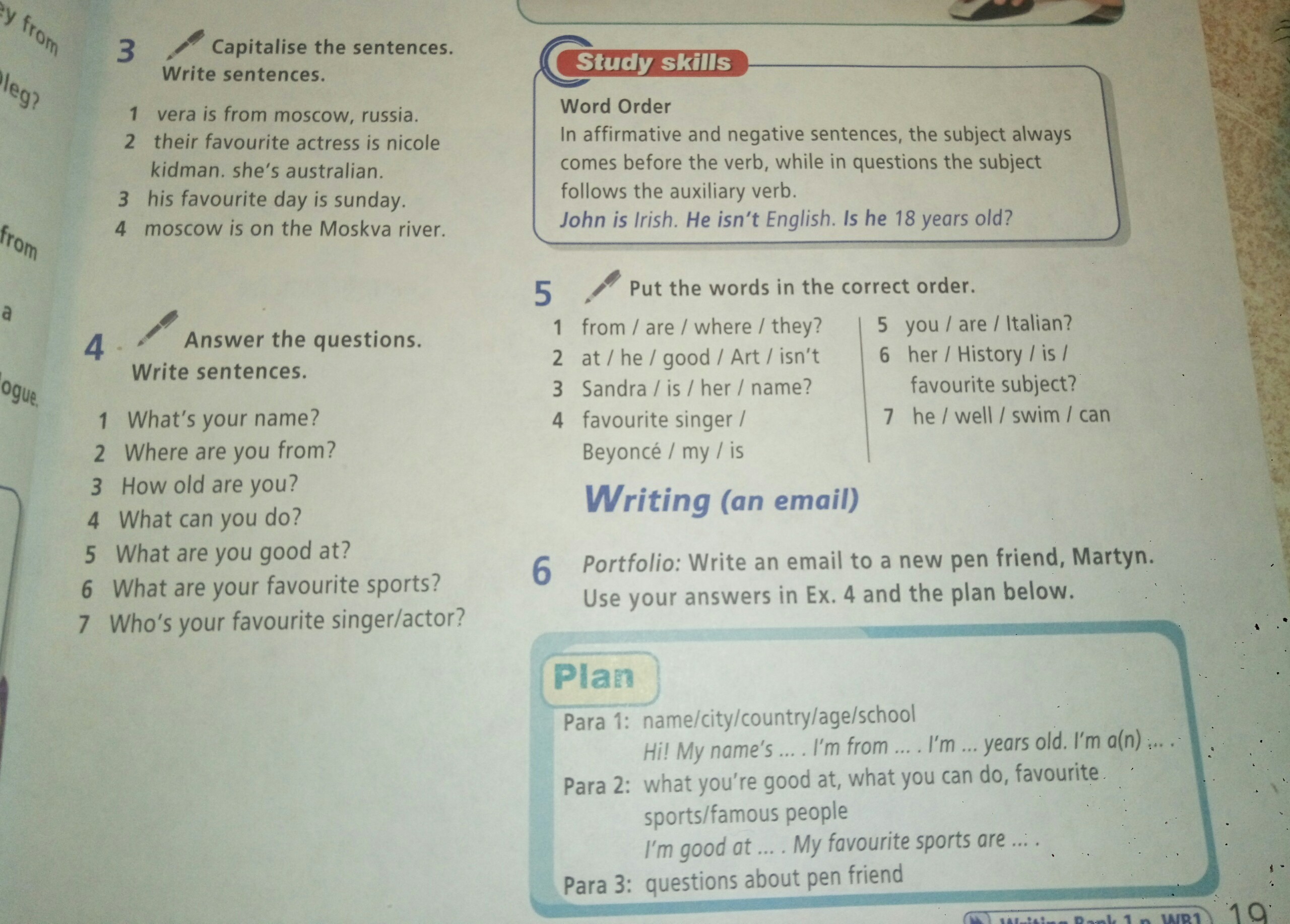 №3 Vera is from Moscow,Russian/Their favourite actress is Nicole Kidman.She is Australian/His favourite day is Sunday/Moscow is on the Moscva river/