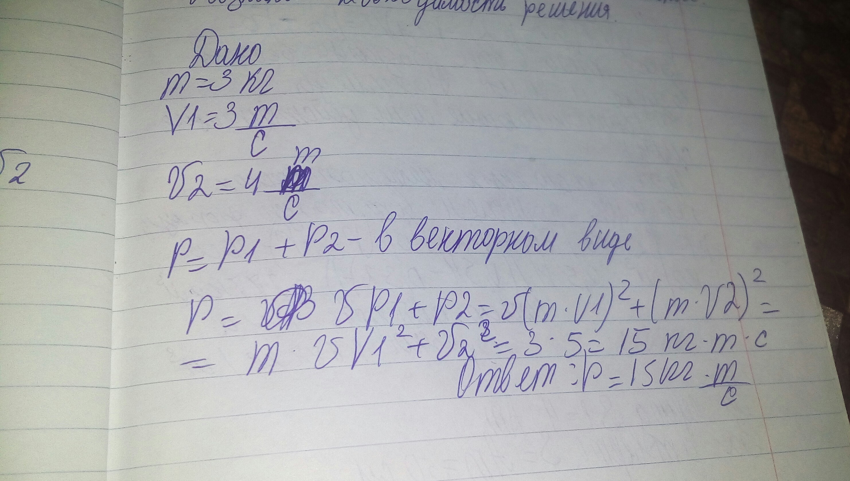 Два одинаковых шарика массами 3 кг движутся под углом 30 градусов друг к другу со скоростями 3 м/с и 4 м/с. Чему равна величина полного импульса этой системы?