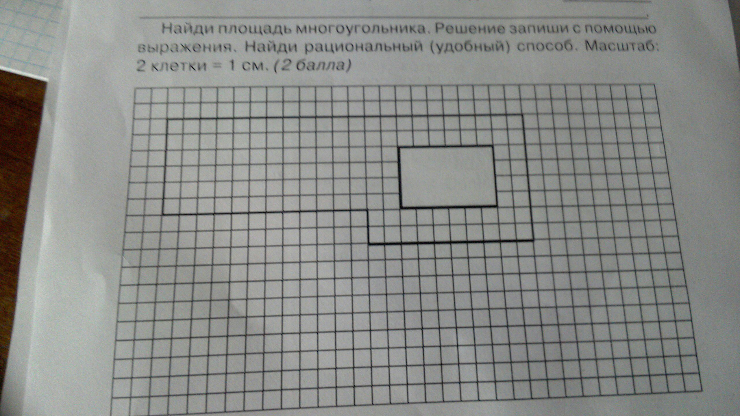 Найди площадь многоугольника решение Запиши с помощью выражения Найди рациональный способ масштаб 2 клетке равно 1см