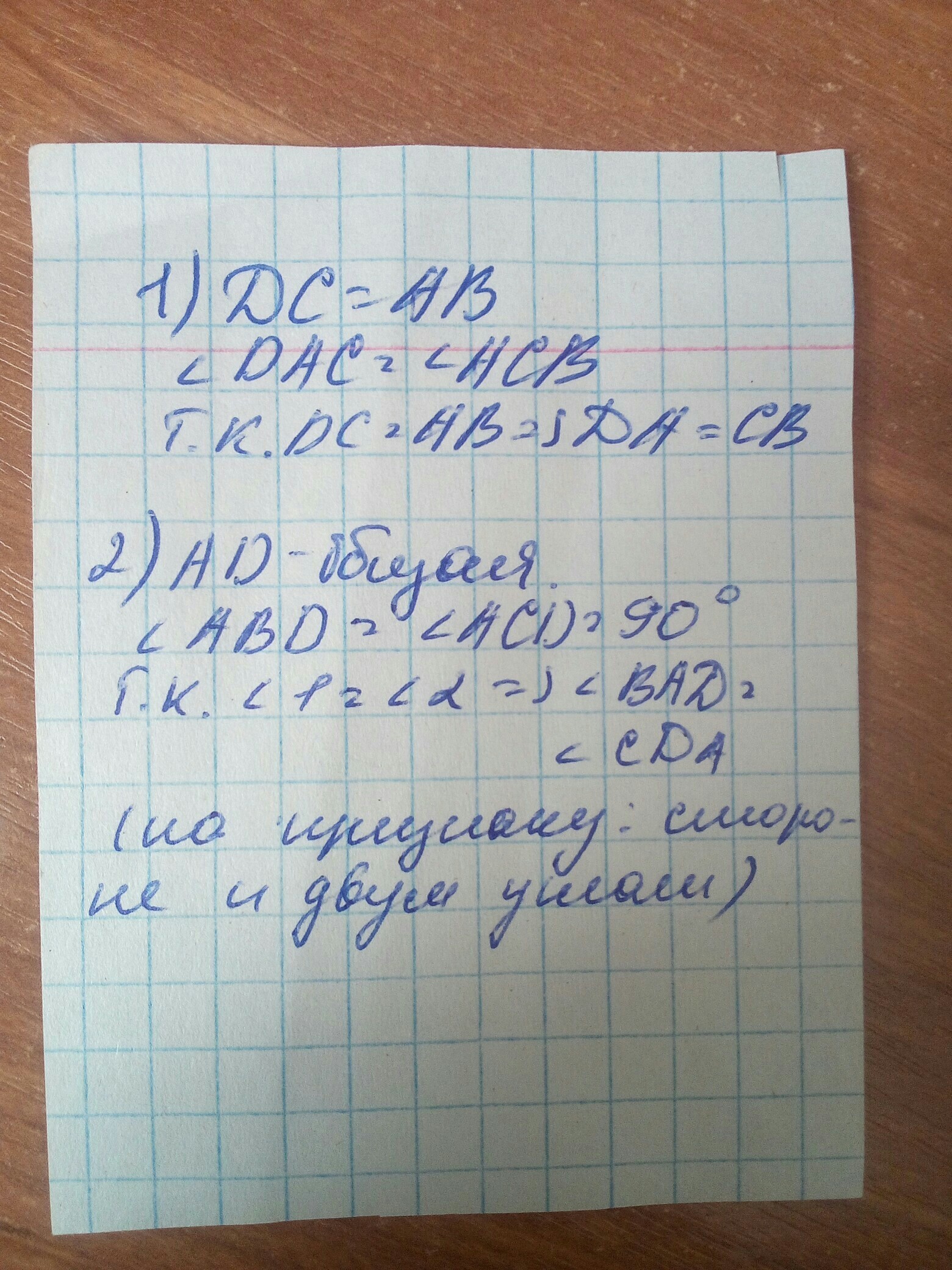 1) признак по углу и двум сторонам
