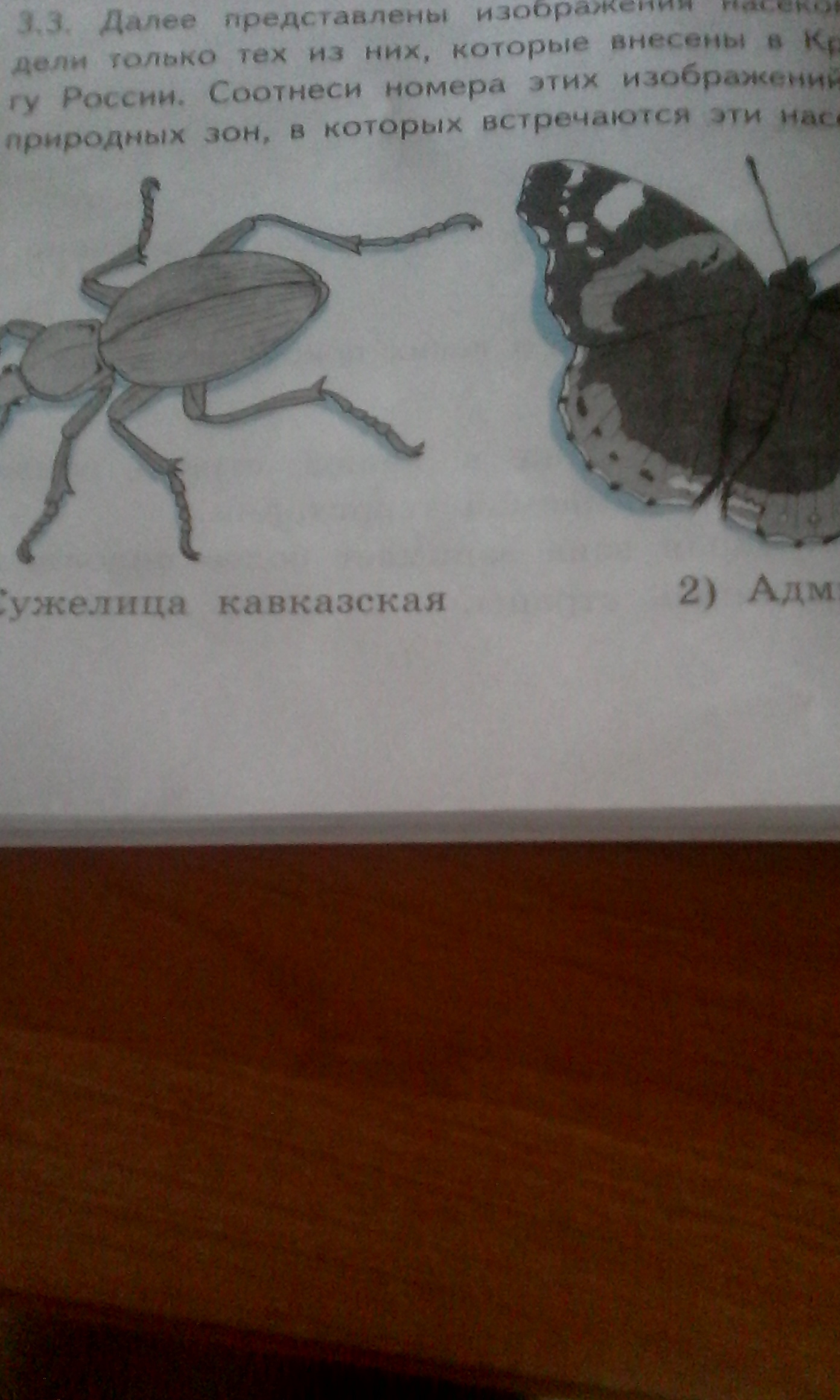 Далее представлены изображения насекомых.Определить только тех из них,которые внесены в Красную книгу России.Соотнеси номера этих изображений с буквами природных,в которых встречаются эти насекомые.