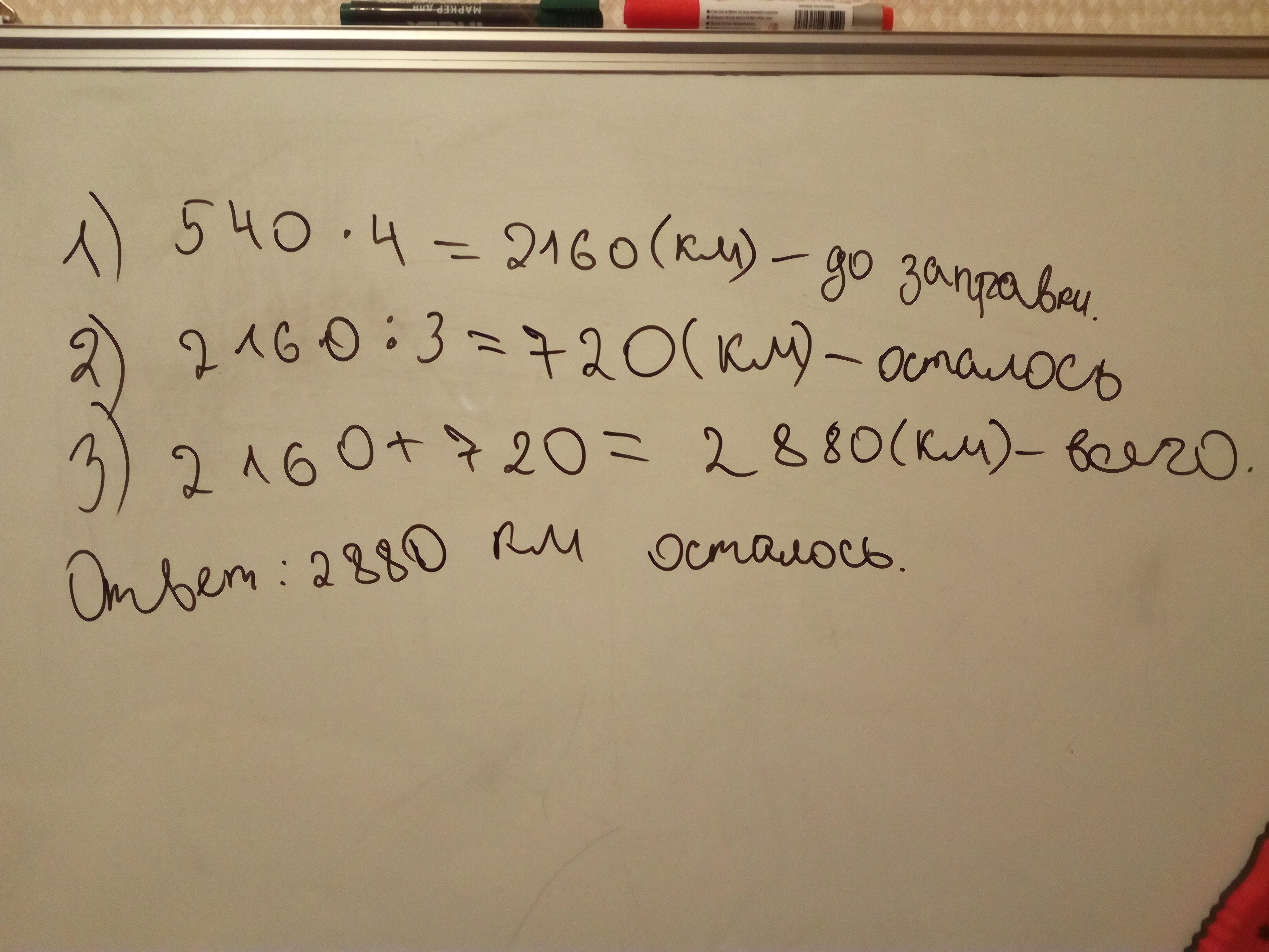 Самолёт летел до заправки 4ч со скоростью 540км/ч. После этого ему осталось лететь в 3 раза меньше. Какое расстояние должен преодолеть самолёт?